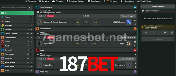 O 187bet oferece uma grande seleção de opções de apostas em e-sports com probabilidades competitivas